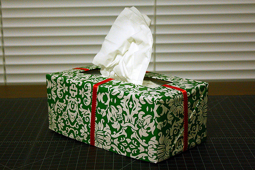 1. Wrap Pillows and Tissue Boxes in Holiday Paper
