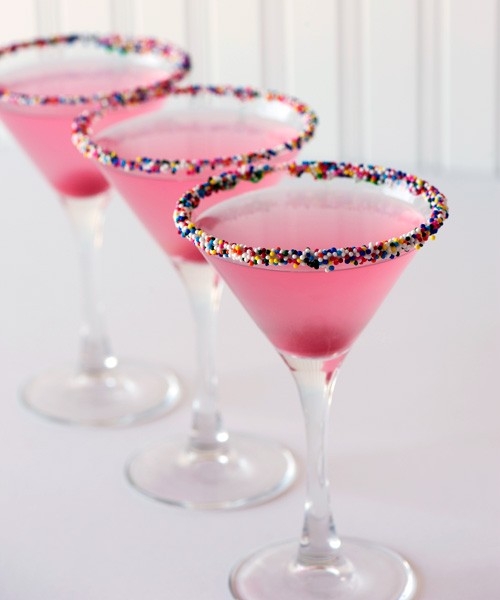 Rim glass with Sprinkles. Combine vodka and cranberry juice in an ice shaker, half-filled with ice cubes. Shake well. Strain into glass. Top with Champagne. Drop in cherry.